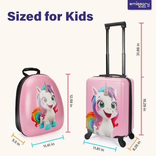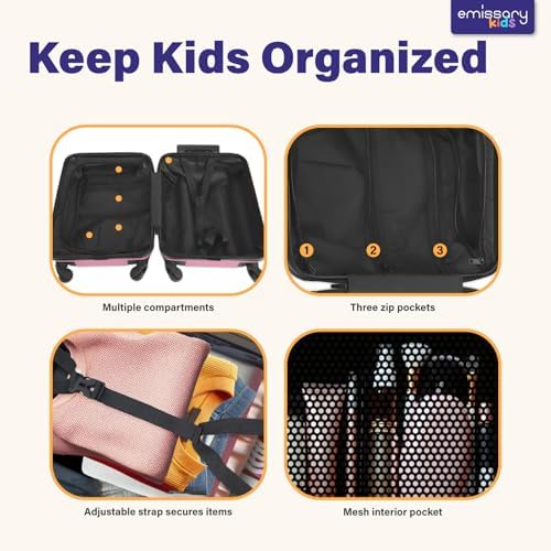 Carry-On Size: This kids carry-on luggage set is designed to fit most airline carry-on size restrictions, so your child can keep their precious items close during the flight. Inside, there’s ample room to pack your child’s essentials for the trip. The interior is designed with pockets and straps to keep items organized and secure during travel.