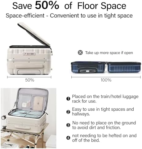 【CREATIVE FRONT OPENING】 Leading the future opening and closing method which is effortless to open or close the suitcase, not only is it easy to load, but it also saves space. This design solves the problem that traditional luggage separated 2 compartments of heavy load then it’s difficult to open and close. Importantly, it also avoid the displacement of items.