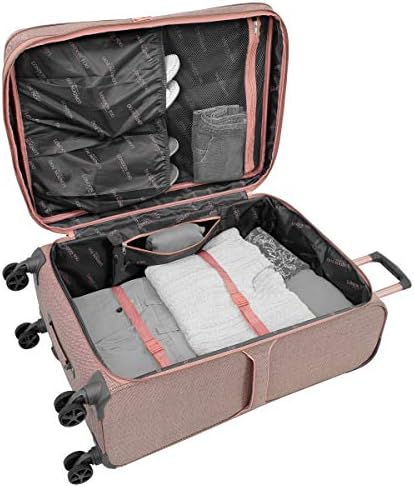 London Fog Newcastle 24″ 8-Wheel Spinner, Rose Charcoal Herringbone