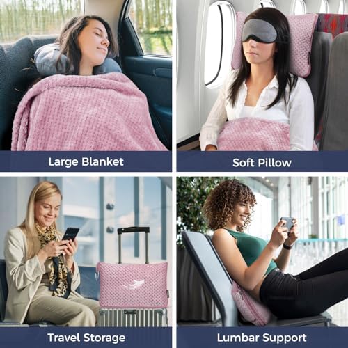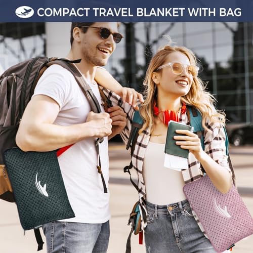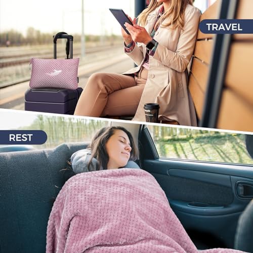 NOWWISH Travel Blanket Airplane Compact with Bag – Premium Soft 2 in 1 Airplane Blanket Pillow,Travel Essentials on Airplane, Camping, Car