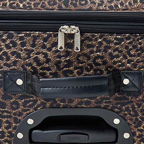 This beautiful deluxe 4-piece expandable luggage set is manufactured with a patented heavy duty EVA-molded hi-count fabric. This set is perfect for the serious and experienced traveler! Manufactured with the very best heavy duty polyester and PVC backing, this luggage set is designed for the traveler on the go and comes with three expandable uprights and a flight tote bag. It comes packed with features including: an inside retractable handle, EZ-Roll in-line skate wheels, back zippered secured pockets, top and side comfort grip handle, stability bars at the bottom to avoid tilting, and locks with keys. Upright features include: Clear in-line skate wheel system for smooth ride Push-button self-locking internally stored retractable handle system Ergonomic and comfortable padded top and side grip handles Two front full size zipper-secured pockets Three internal organizational pockets for all your traveling needs Each upright’s interior is fully lined with a durable and elegantly imprinted lining Elegant silver pewter heavy duty industrial hardware Carry-On Flight Tote Bag features include: Elegantly imprinted full interior lining Detachable and adjustable non-slip shoulder strap Spacious main compartment Maximum strength industrial hardware 19-inch Carry-on Upright: 20 inches high x 12. 5 inches wide x 7. 5 inches expandable to 10 inches deep. 6 lbs. 24-inch Upright: 24 inches high x 16 inches wide x 10 inches expandable to 12 inches deep. 8 lbs. 28-inch Upright: 28 inches high x 18 inches wide x 12 inches expandable to 14 inches deep. 9 lbs. Carry-On Flight Tote Bag: 14 inches wide x 11 inches high x 5 inches deep – 1 lb.