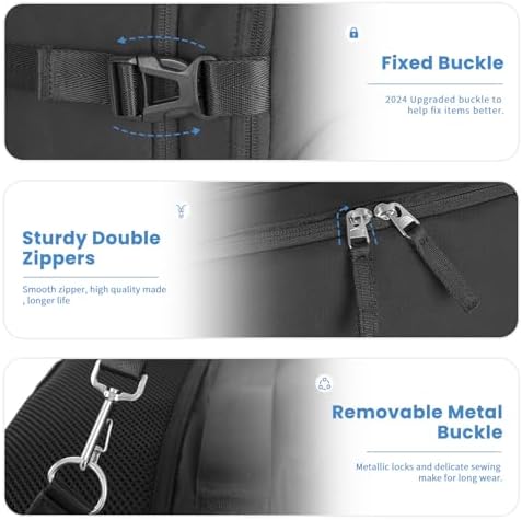 Easier Packing: Features with 180 degree opening and enough depth of the interior space, this traveling backpack enables you to pack it almost like a suitcase. And the side buckles will be helpful to compress the backpack when you overpack it